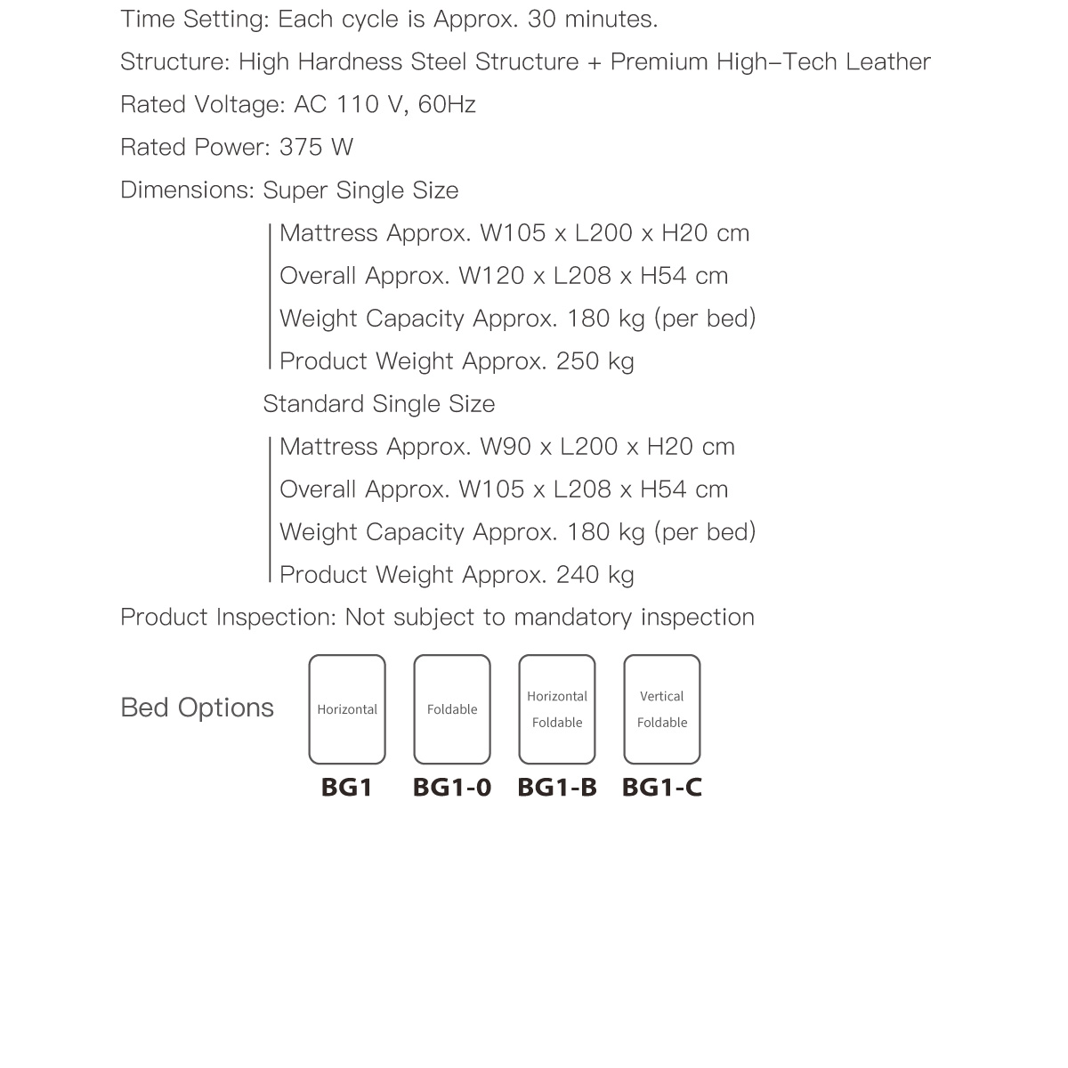 Product Inspection: Not subject to mandatory inspection