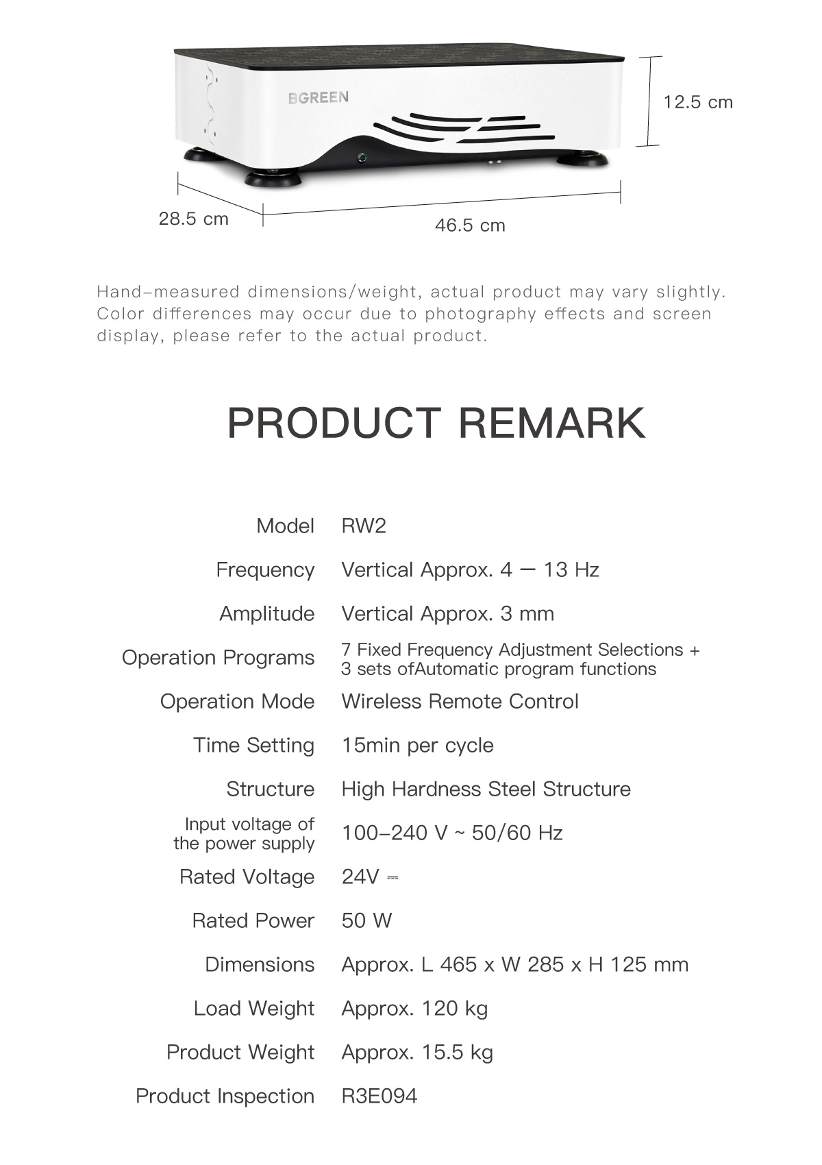 Product Weight:Approx. 15.5 kg